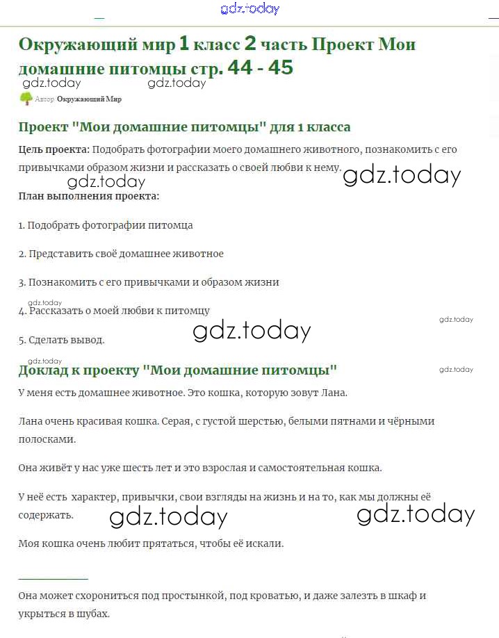 На страницах сайта gdz.today вы найдете учебный и вспомогательный материал, направленный на улучшения знаний школьной программы. ГДЗ - онлайн мир знаний Решение к части 2 (Страниицы) 44 (мои домашние животные) Учебнику по Окружающему миру для 1 класса Плешаков Просвещение Школа России 2017