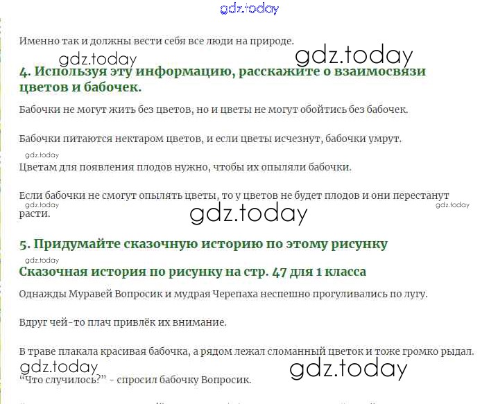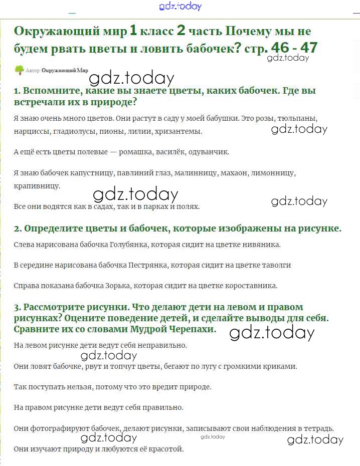 На страницах сайта gdz.today вы найдете учебный и вспомогательный материал, направленный на улучшения знаний школьной программы. ГДЗ - онлайн мир знаний Решение к части 2 (Страниицы) 46-47 Учебнику по Окружающему миру для 1 класса Плешаков Просвещение Школа России 2017