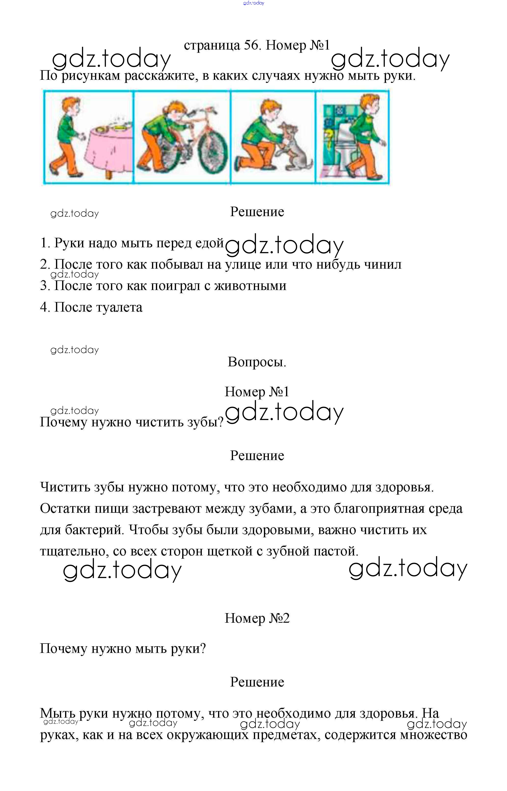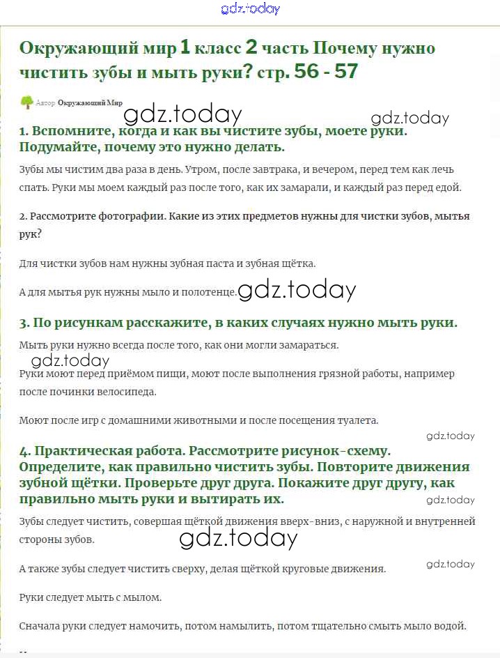 На страницах сайта gdz.today вы найдете учебный и вспомогательный материал, направленный на улучшения знаний школьной программы. ГДЗ - онлайн мир знаний Решение к части 2 (Страниицы) 56-57 Учебнику по Окружающему миру для 1 класса Плешаков Просвещение Школа России 2017