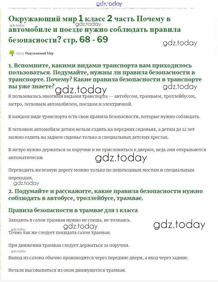 На страницах сайта gdz.today вы найдете учебный и вспомогательный материал, направленный на улучшения знаний школьной программы. ГДЗ - онлайн мир знаний Решение к части 2 (Страниицы) 68-69 Учебнику по Окружающему миру для 1 класса Плешаков Просвещение Школа России 2017