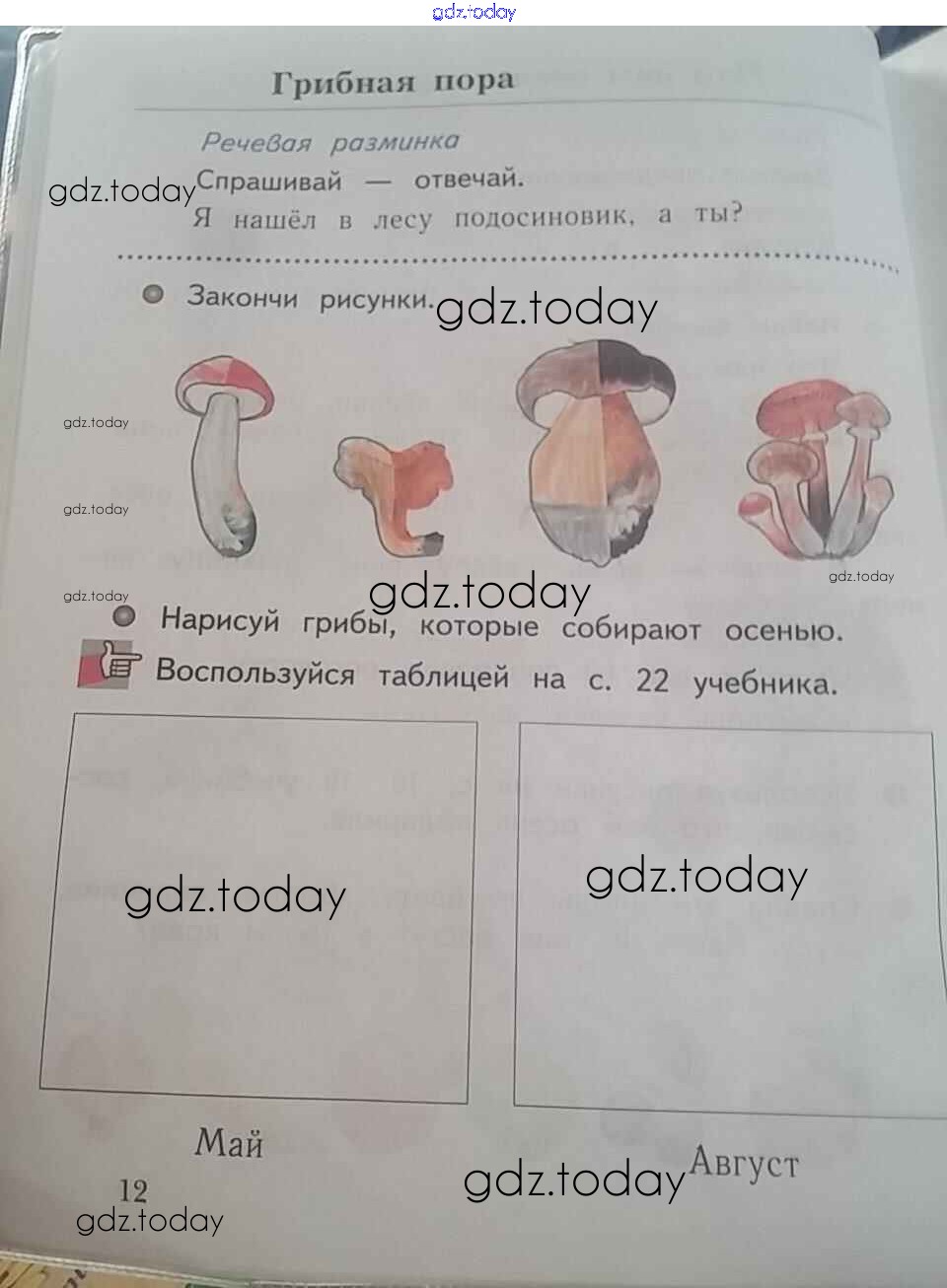 На страницах сайта gdz.today вы найдете учебный и вспомогательный материал, направленный на улучшения знаний школьной программы. ГДЗ - онлайн мир знаний Страницы (решение) 12 Рабочей тетради по Окружающему миру для 1 класса Виноградова Вентана-граф Начальная школа XXI века 2017