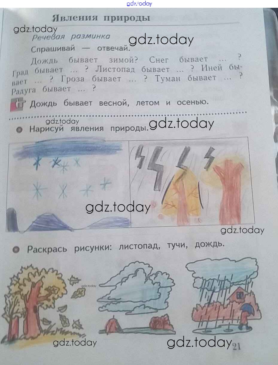 На страницах сайта gdz.today вы найдете учебный и вспомогательный материал, направленный на улучшения знаний школьной программы. ГДЗ - онлайн мир знаний Страницы (решение) 21 Рабочей тетради по Окружающему миру для 1 класса Виноградова Вентана-граф Начальная школа XXI века 2017