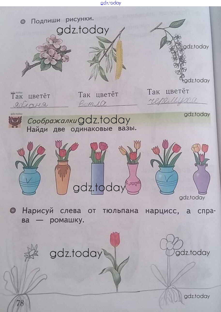 На страницах сайта gdz.today вы найдете учебный и вспомогательный материал, направленный на улучшения знаний школьной программы. ГДЗ - онлайн мир знаний Страницы (решение) 78 Рабочей тетради по Окружающему миру для 1 класса Виноградова Вентана-граф Начальная школа XXI века 2017