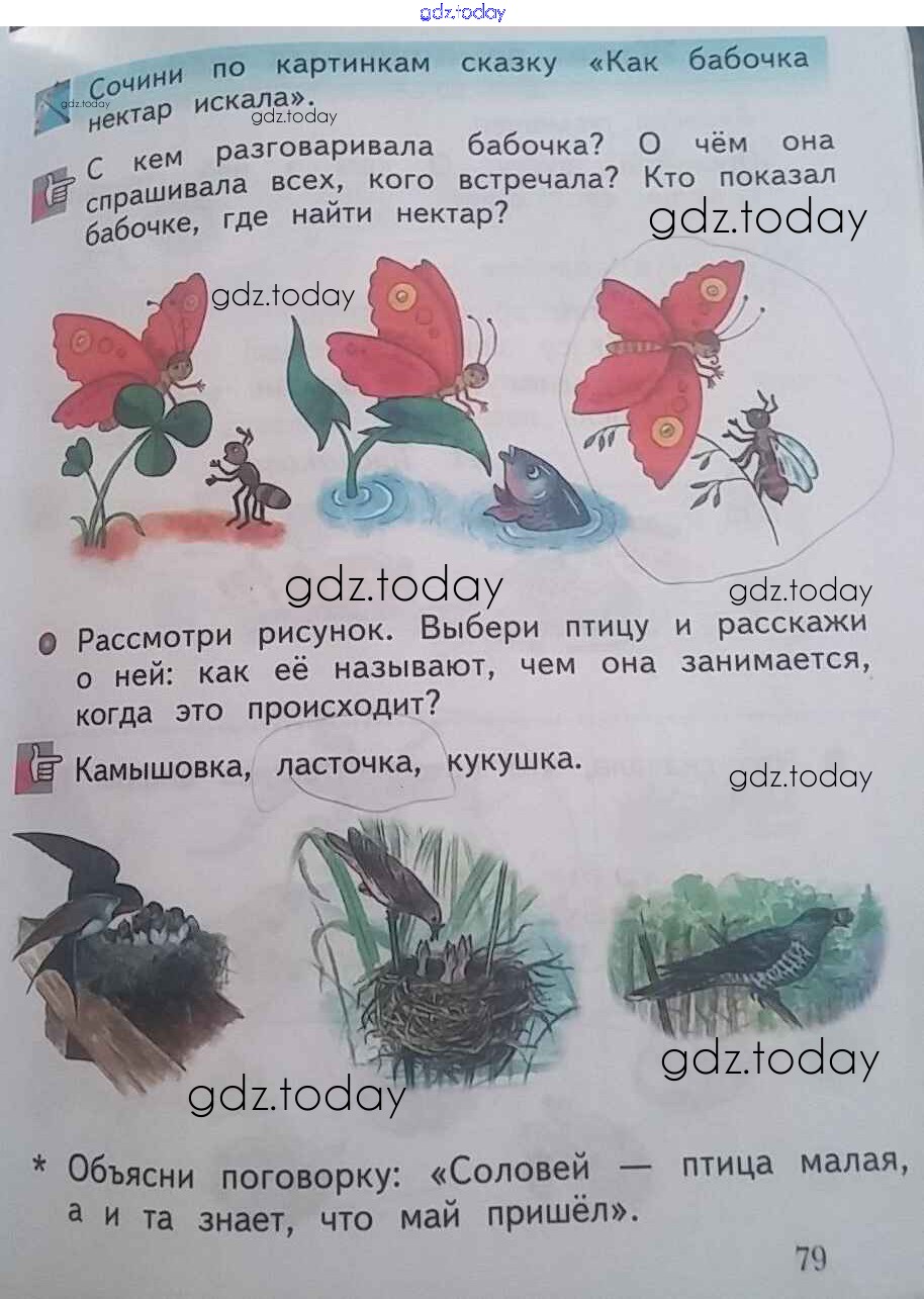 На страницах сайта gdz.today вы найдете учебный и вспомогательный материал, направленный на улучшения знаний школьной программы. ГДЗ - онлайн мир знаний Страницы (решение) 79 Рабочей тетради по Окружающему миру для 1 класса Виноградова Вентана-граф Начальная школа XXI века 2017