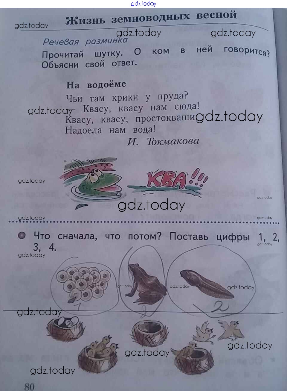 На страницах сайта gdz.today вы найдете учебный и вспомогательный материал, направленный на улучшения знаний школьной программы. ГДЗ - онлайн мир знаний Страницы (решение) 80 Рабочей тетради по Окружающему миру для 1 класса Виноградова Вентана-граф Начальная школа XXI века 2017