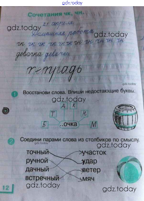 На страницах сайта gdz.today вы найдете учебный и вспомогательный материал, направленный на улучшения знаний школьной программы. ГДЗ - онлайн мир знаний Решение к части 2. Страницы 12 Рабочей тетради по Русскому языку для 1 класса Андрианова Дрофа Планета знаний 2017