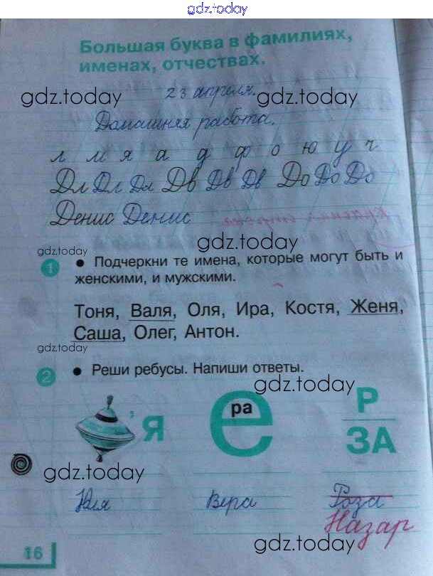 На страницах сайта gdz.today вы найдете учебный и вспомогательный материал, направленный на улучшения знаний школьной программы. ГДЗ - онлайн мир знаний Решение к части 2. Страницы 16 Рабочей тетради по Русскому языку для 1 класса Андрианова Дрофа Планета знаний 2017