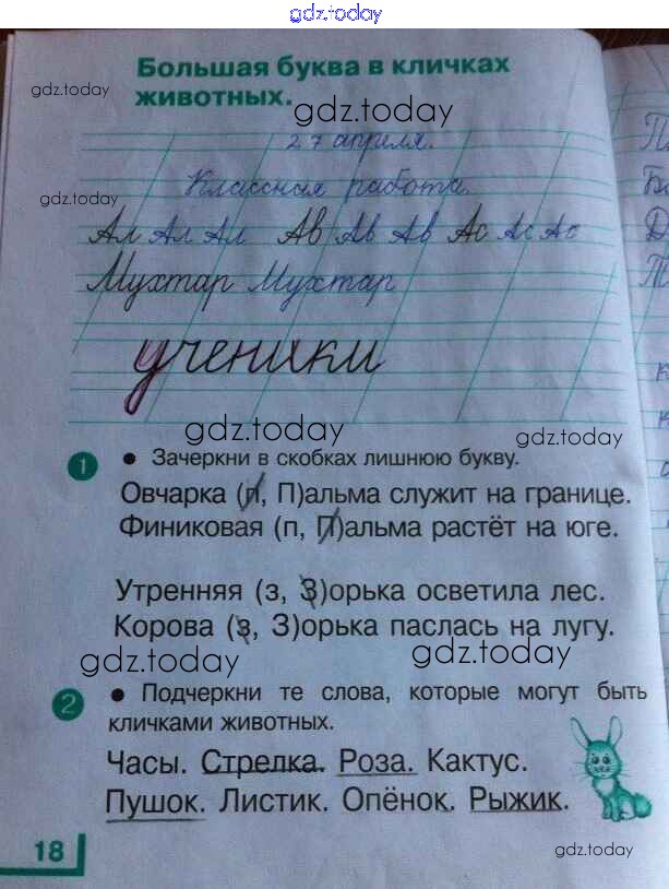На страницах сайта gdz.today вы найдете учебный и вспомогательный материал, направленный на улучшения знаний школьной программы. ГДЗ - онлайн мир знаний Решение к части 2. Страницы 18 Рабочей тетради по Русскому языку для 1 класса Андрианова Дрофа Планета знаний 2017