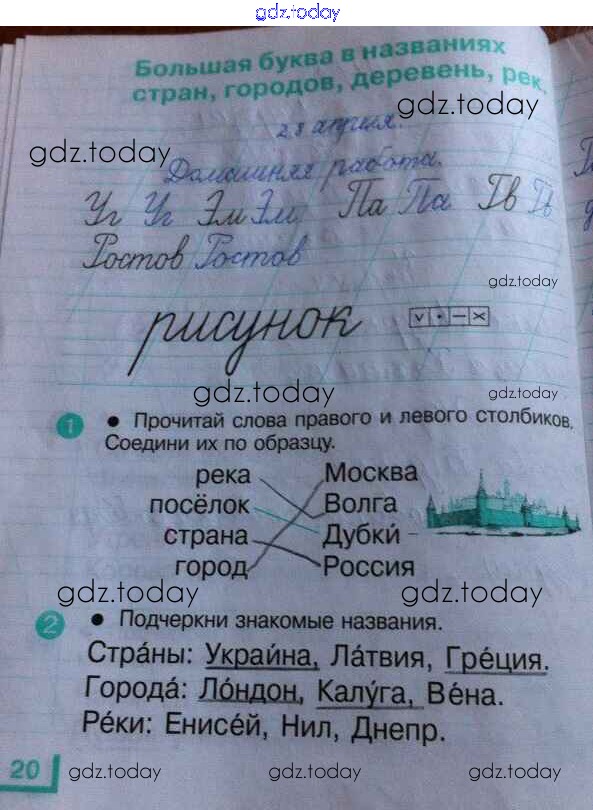 На страницах сайта gdz.today вы найдете учебный и вспомогательный материал, направленный на улучшения знаний школьной программы. ГДЗ - онлайн мир знаний Решение к части 2. Страницы 20 Рабочей тетради по Русскому языку для 1 класса Андрианова Дрофа Планета знаний 2017
