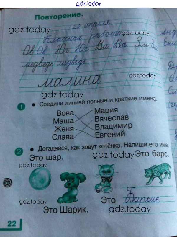 На страницах сайта gdz.today вы найдете учебный и вспомогательный материал, направленный на улучшения знаний школьной программы. ГДЗ - онлайн мир знаний Решение к части 2. Страницы 22 Рабочей тетради по Русскому языку для 1 класса Андрианова Дрофа Планета знаний 2017
