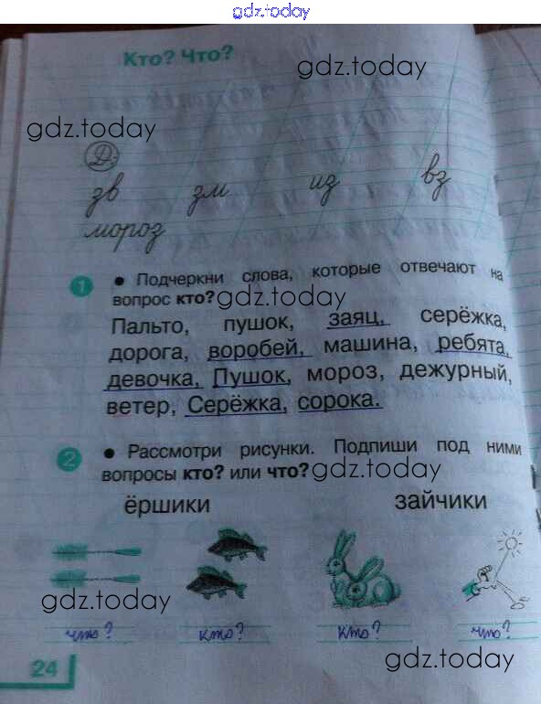 На страницах сайта gdz.today вы найдете учебный и вспомогательный материал, направленный на улучшения знаний школьной программы. ГДЗ - онлайн мир знаний Решение к части 2. Страницы 24 Рабочей тетради по Русскому языку для 1 класса Андрианова Дрофа Планета знаний 2017
