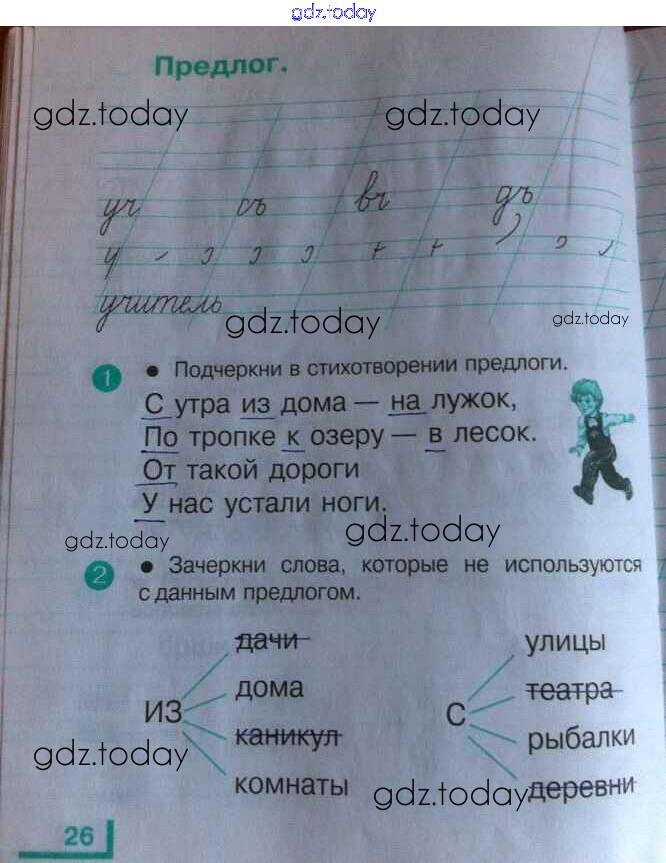 На страницах сайта gdz.today вы найдете учебный и вспомогательный материал, направленный на улучшения знаний школьной программы. ГДЗ - онлайн мир знаний Решение к части 2. Страницы 26 Рабочей тетради по Русскому языку для 1 класса Андрианова Дрофа Планета знаний 2017