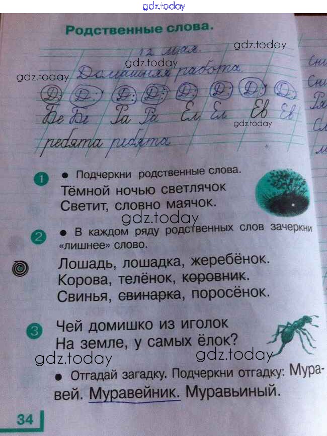На страницах сайта gdz.today вы найдете учебный и вспомогательный материал, направленный на улучшения знаний школьной программы. ГДЗ - онлайн мир знаний Решение к части 2. Страницы 34 Рабочей тетради по Русскому языку для 1 класса Андрианова Дрофа Планета знаний 2017