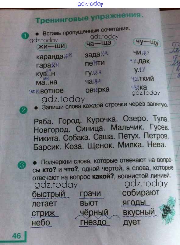 На страницах сайта gdz.today вы найдете учебный и вспомогательный материал, направленный на улучшения знаний школьной программы. ГДЗ - онлайн мир знаний Решение к части 2. Страницы 46 Рабочей тетради по Русскому языку для 1 класса Андрианова Дрофа Планета знаний 2017