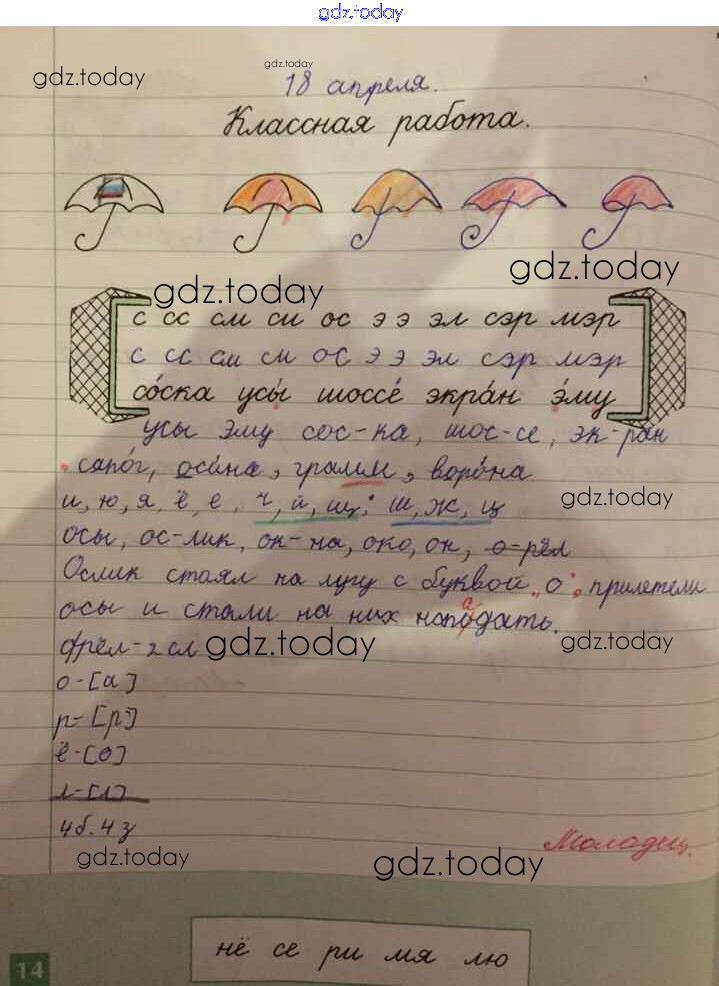 На страницах сайта gdz.today вы найдете учебный и вспомогательный материал, направленный на улучшения знаний школьной программы. ГДЗ - онлайн мир знаний Страницы (решение) 14 Рабочей тетради по Русскому языку для 1 класса Бунеева, Яковлева Баласс Школа 2100 2012