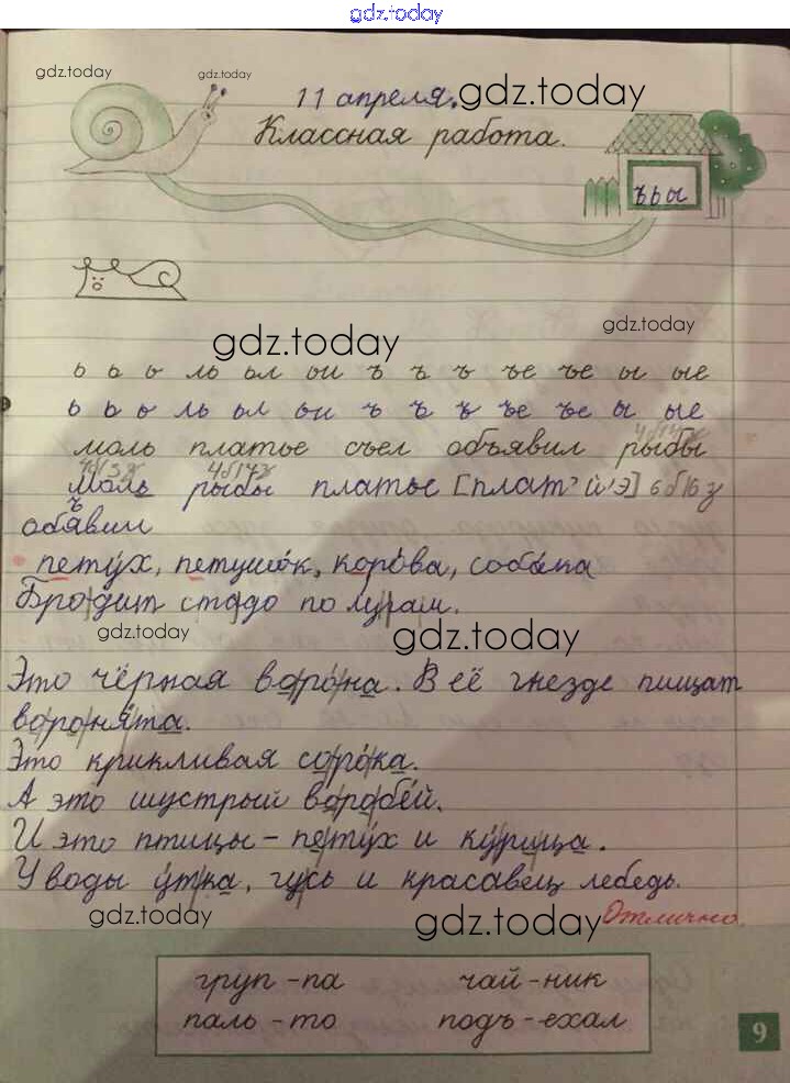 На страницах сайта gdz.today вы найдете учебный и вспомогательный материал, направленный на улучшения знаний школьной программы. ГДЗ - онлайн мир знаний Страницы (решение) 9 Рабочей тетради по Русскому языку для 1 класса Бунеева, Яковлева Баласс Школа 2100 2012