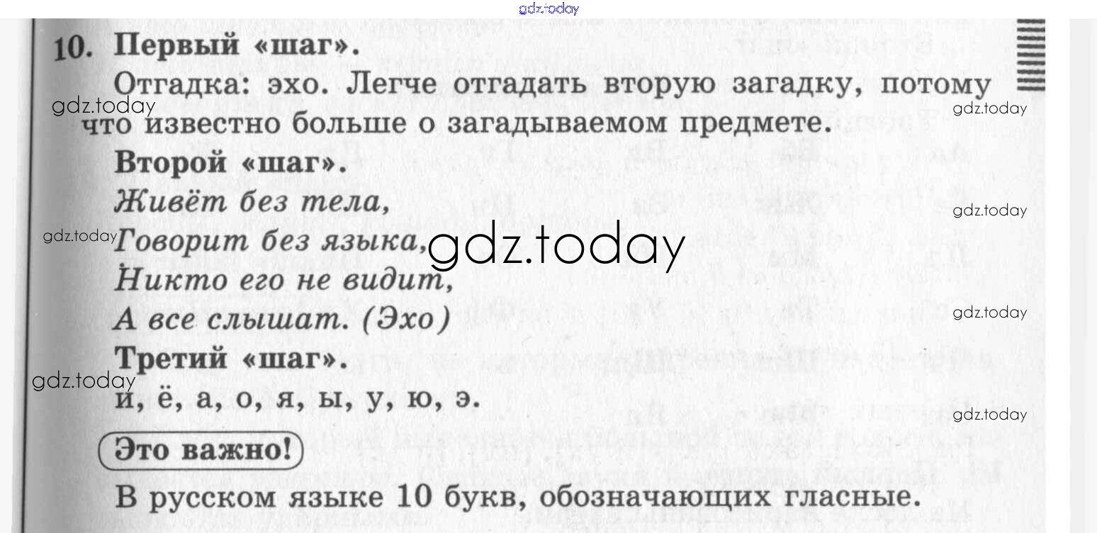 На страницах сайта gdz.today вы найдете учебный и вспомогательный материал, направленный на улучшения знаний школьной программы. ГДЗ - онлайн мир знаний Решение. Упражнения  10 Учебнику по Русскому языку для 1 класса Бунеев, Бунеева  Баласс Школа 2100 2016