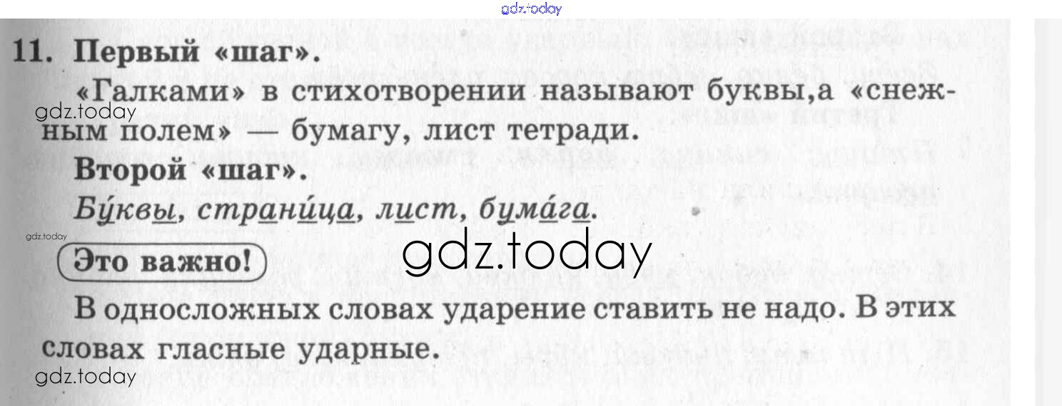 На страницах сайта gdz.today вы найдете учебный и вспомогательный материал, направленный на улучшения знаний школьной программы. ГДЗ - онлайн мир знаний Решение. Упражнения  11 Учебнику по Русскому языку для 1 класса Бунеев, Бунеева  Баласс Школа 2100 2016