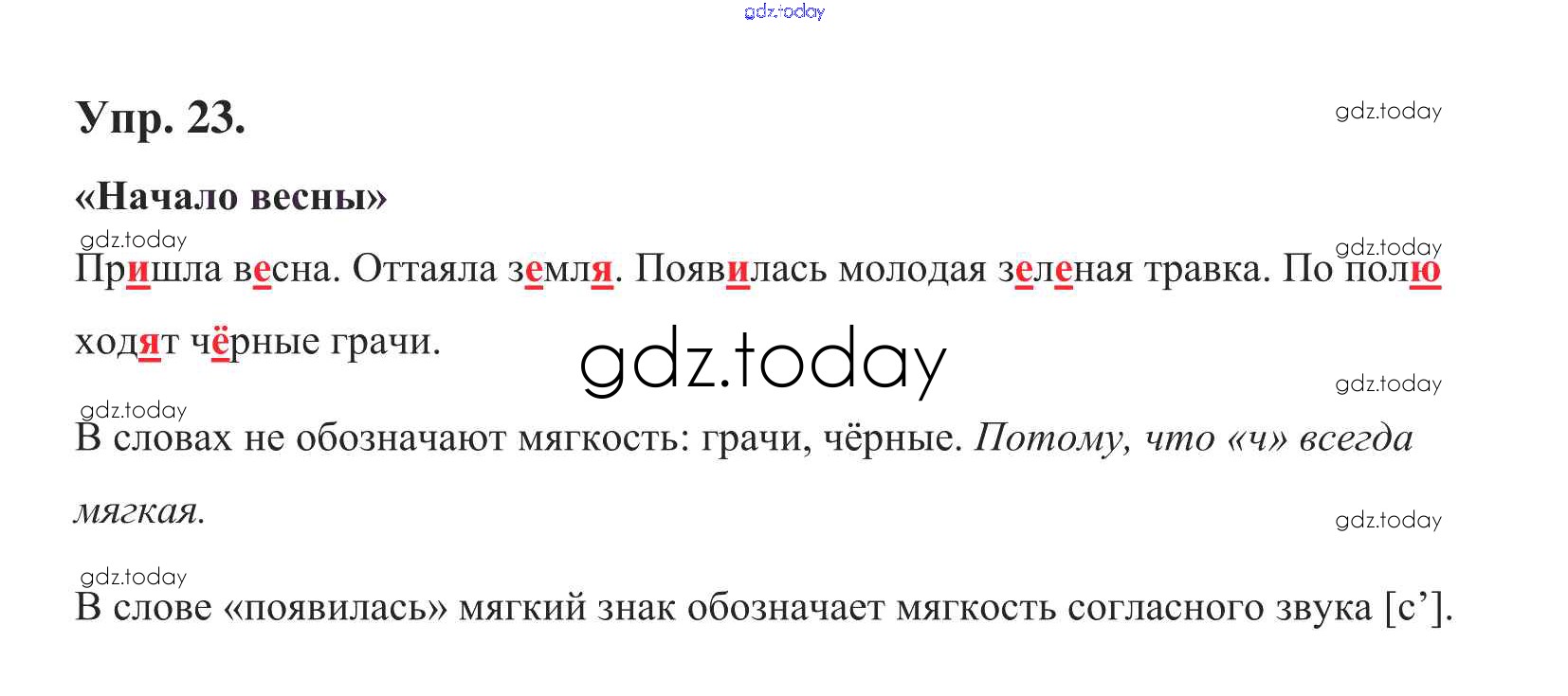 На страницах сайта gdz.today вы найдете учебный и вспомогательный материал, направленный на улучшения знаний школьной программы. ГДЗ - онлайн мир знаний Решение. Упражнения  23 Учебнику по Русскому языку для 1 класса Бунеев, Бунеева  Баласс Школа 2100 2016