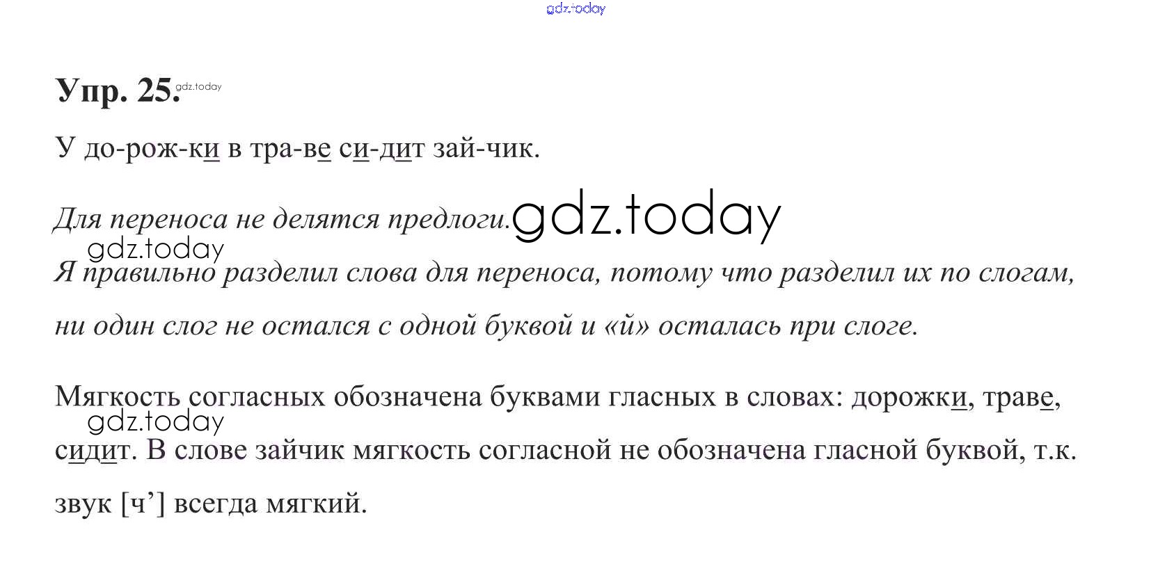 На страницах сайта gdz.today вы найдете учебный и вспомогательный материал, направленный на улучшения знаний школьной программы. ГДЗ - онлайн мир знаний Решение. Упражнения  25 Учебнику по Русскому языку для 1 класса Бунеев, Бунеева  Баласс Школа 2100 2016