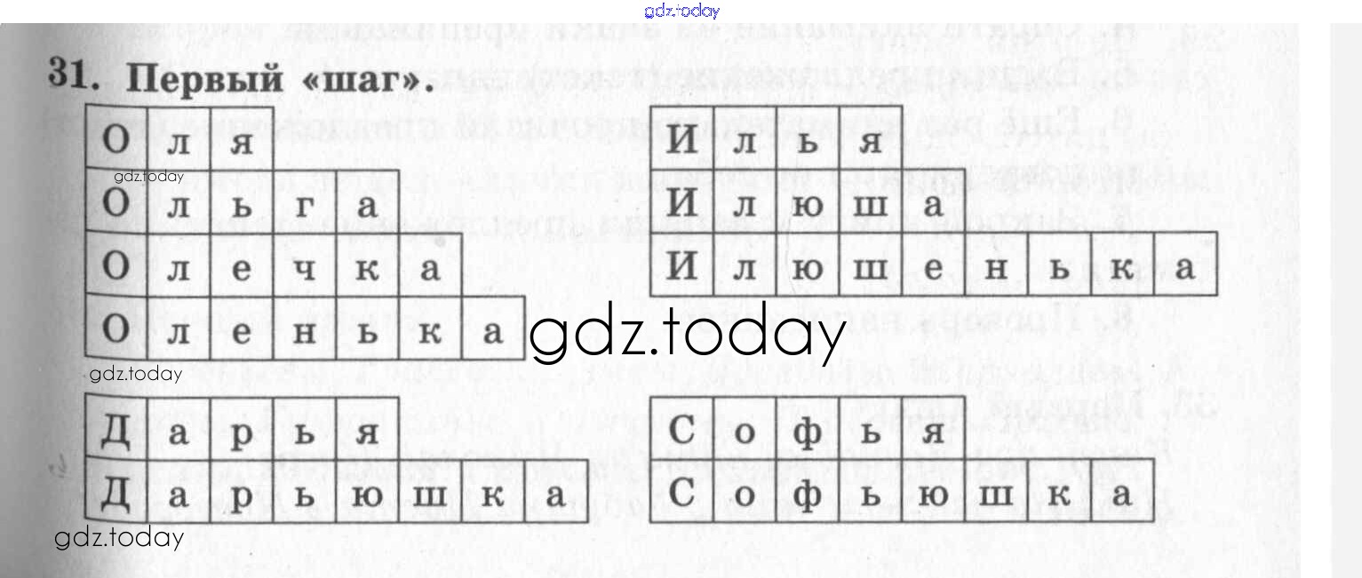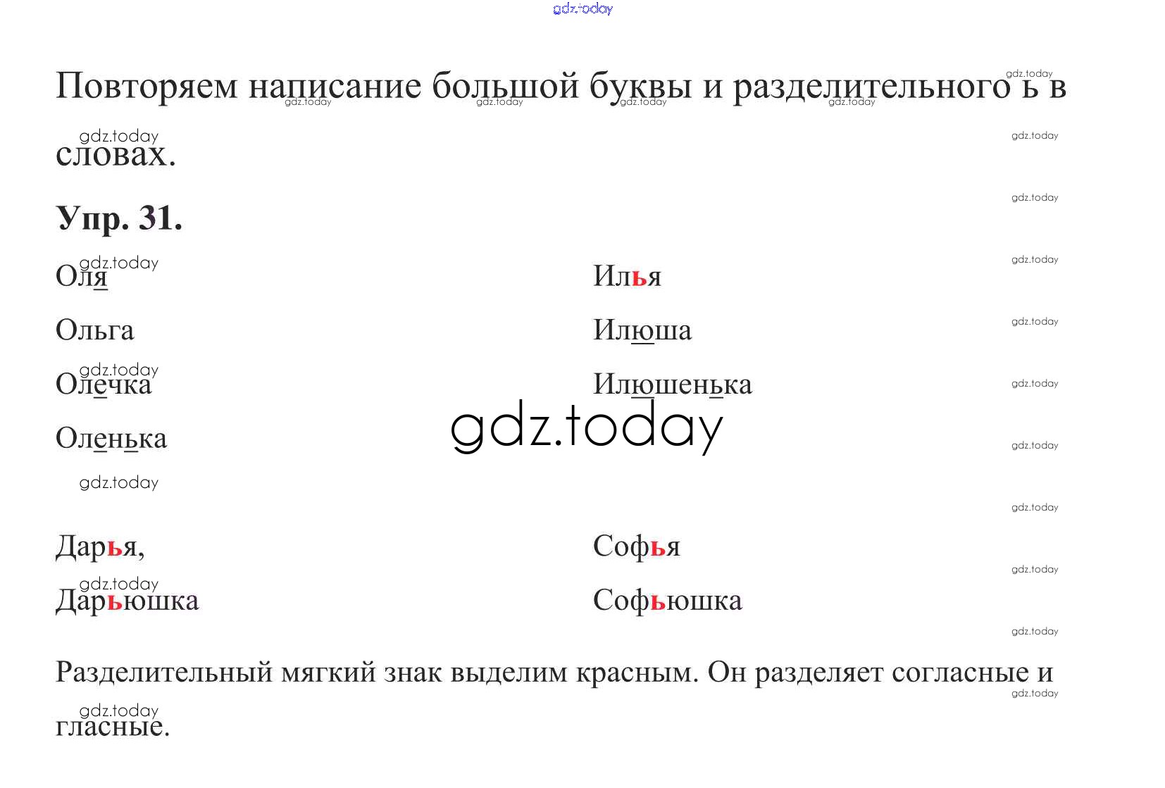 На страницах сайта gdz.today вы найдете учебный и вспомогательный материал, направленный на улучшения знаний школьной программы. ГДЗ - онлайн мир знаний Решение. Упражнения  31 Учебнику по Русскому языку для 1 класса Бунеев, Бунеева  Баласс Школа 2100 2016