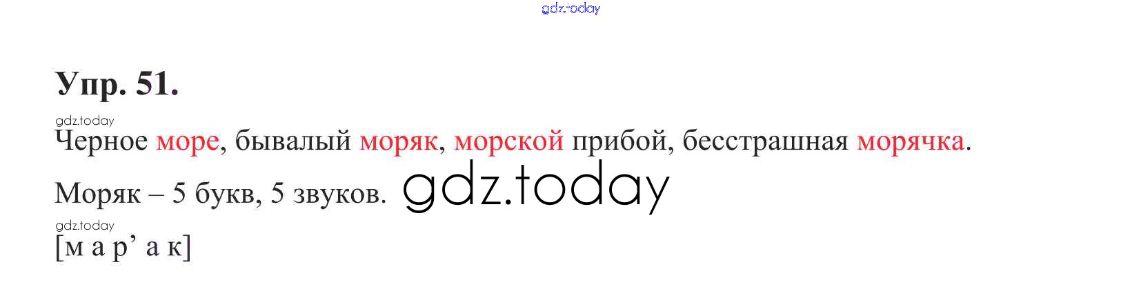 На страницах сайта gdz.today вы найдете учебный и вспомогательный материал, направленный на улучшения знаний школьной программы. ГДЗ - онлайн мир знаний Решение. Упражнения  51 Учебнику по Русскому языку для 1 класса Бунеев, Бунеева  Баласс Школа 2100 2016