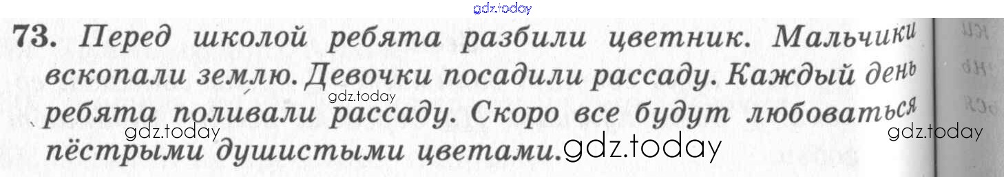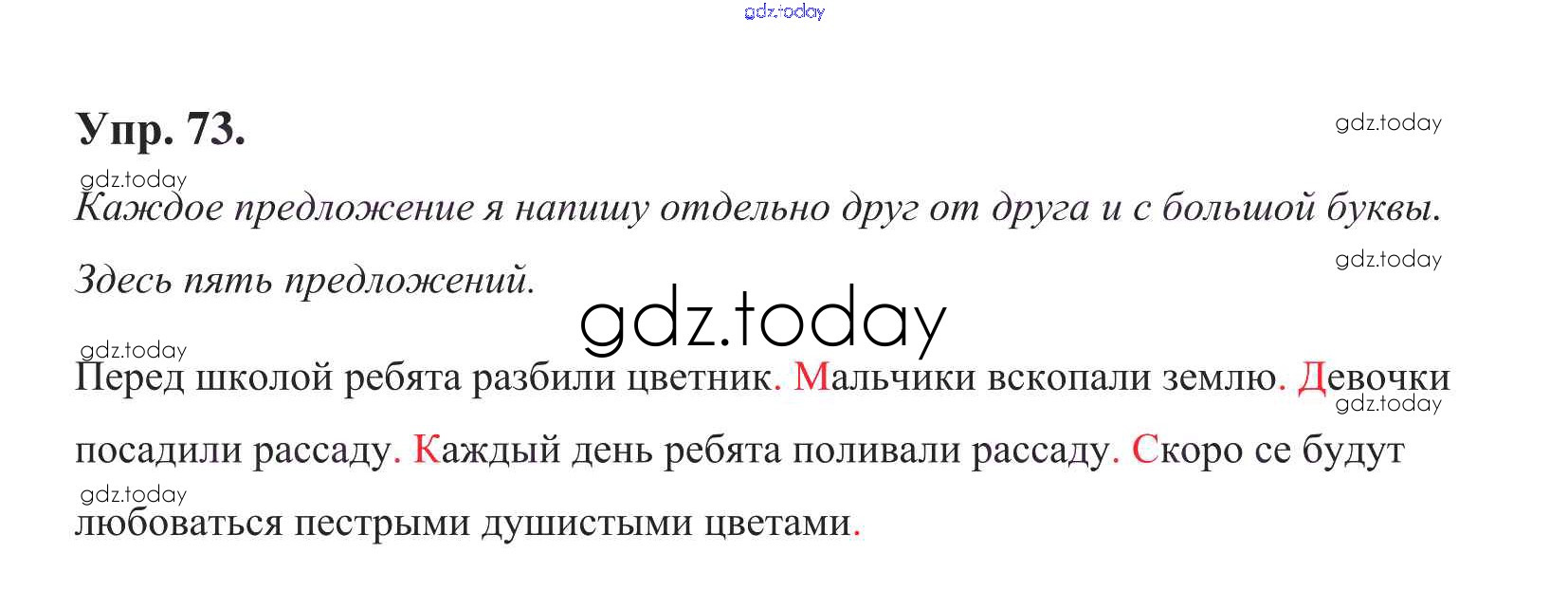 На страницах сайта gdz.today вы найдете учебный и вспомогательный материал, направленный на улучшения знаний школьной программы. ГДЗ - онлайн мир знаний Решение. Упражнения 73 Учебнику по Русскому языку для 1 класса Бунеев, Бунеева Баласс Школа 2100 2016