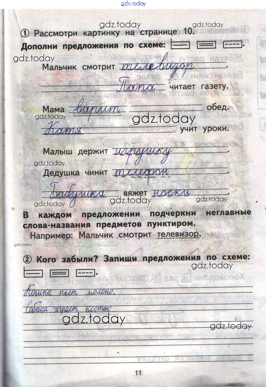Ответы к Решение Страницы 11 Тетради для самостоятельной работы по Русскому языку для 1 класса Гольфман, Чуракова Академия Перспективная начальная школа 2016