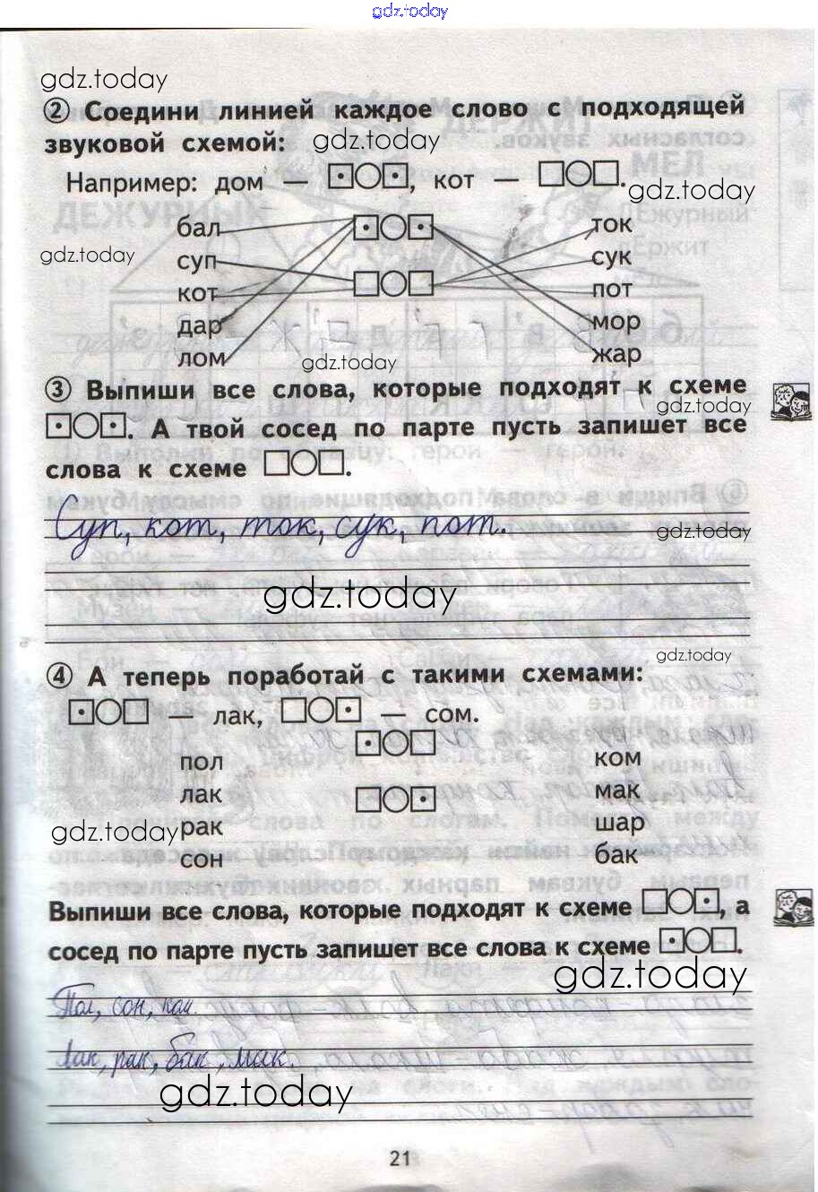 Ответы к Решение Страницы 21 Тетради для самостоятельной работы по Русскому языку для 1 класса Гольфман, Чуракова Академия Перспективная начальная школа 2016