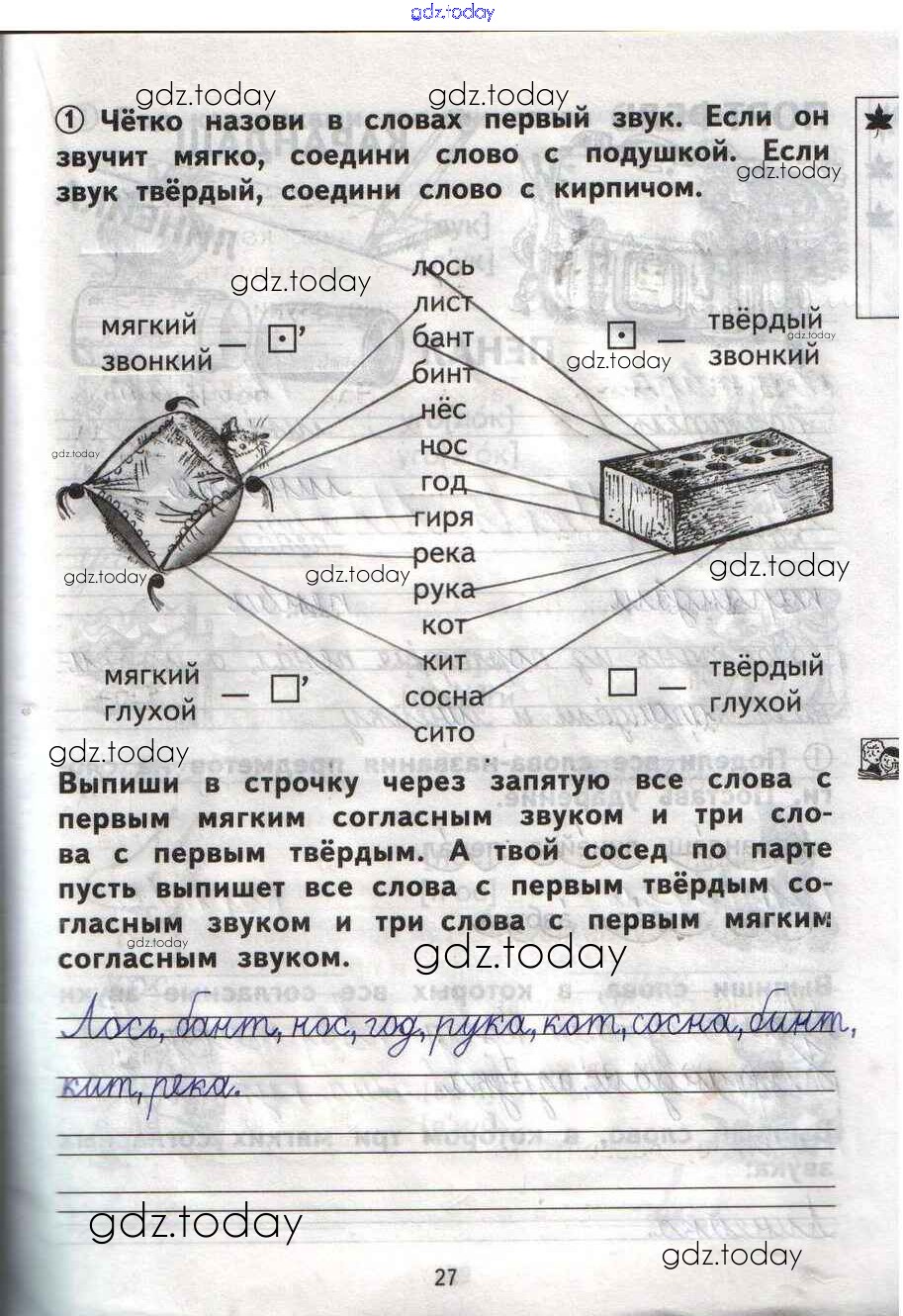 Ответы к Решение Страницы 27 Тетради для самостоятельной работы по Русскому языку для 1 класса Гольфман, Чуракова Академия Перспективная начальная школа 2016