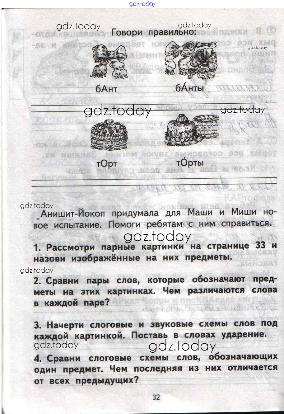 Ответы к Решение Страницы 32 Тетради для самостоятельной работы по Русскому языку для 1 класса Гольфман, Чуракова Академия Перспективная начальная школа 2016