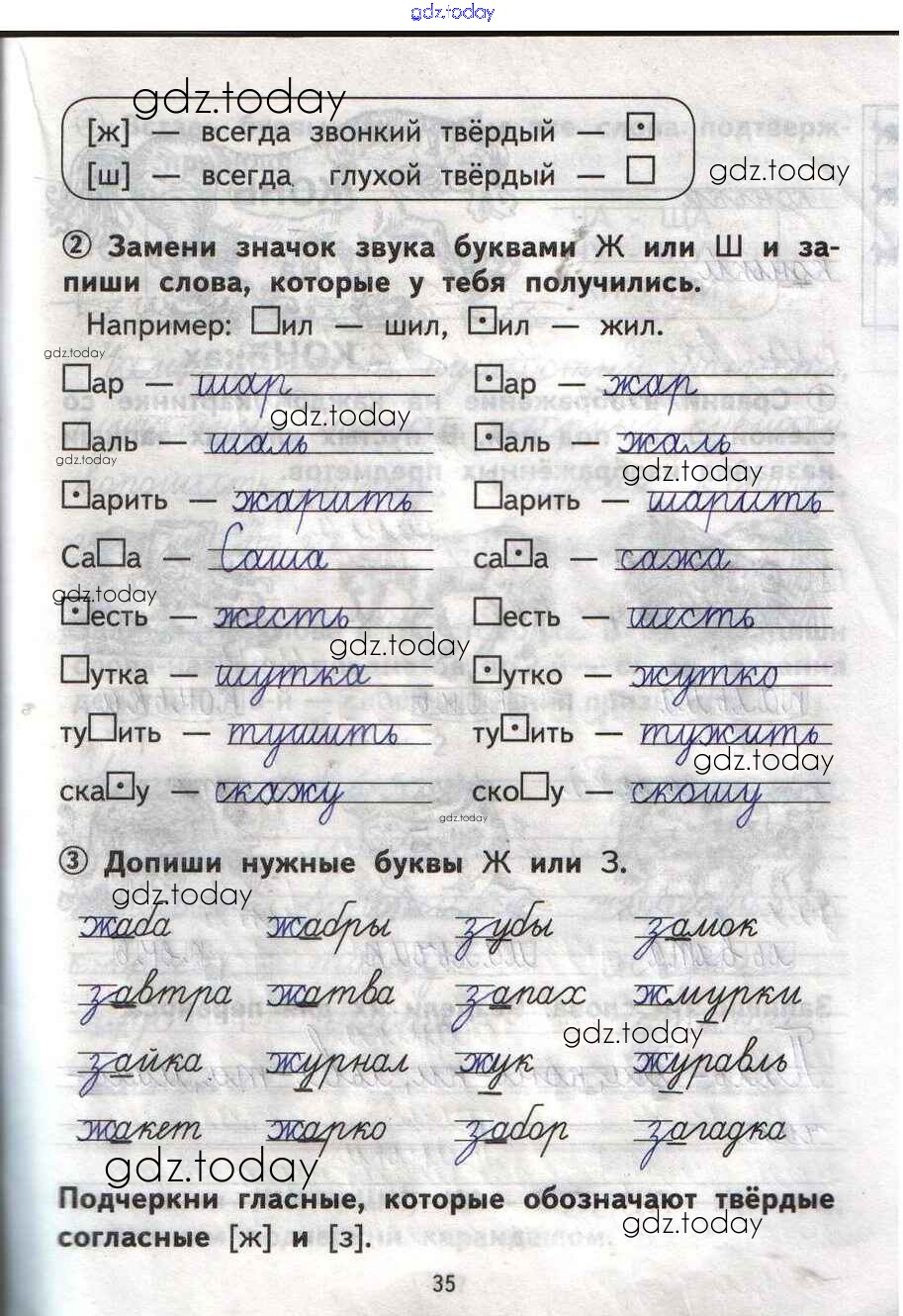 Ответы к Решение Страницы 35 Тетради для самостоятельной работы по Русскому языку для 1 класса Гольфман, Чуракова Академия Перспективная начальная школа 2016