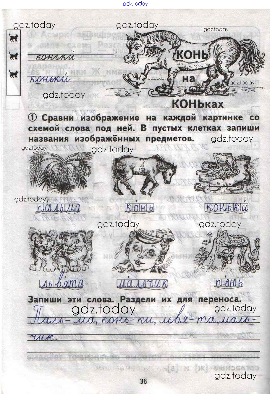 На страницах сайта gdz.today вы найдете учебный и вспомогательный материал, направленный на улучшения знаний школьной программы. ГДЗ - онлайн мир знаний Решение Страницы 36 Тетради для самостоятельной работы по Русскому языку для 1 класса Гольфман, Чуракова Академия Перспективная начальная школа 2016