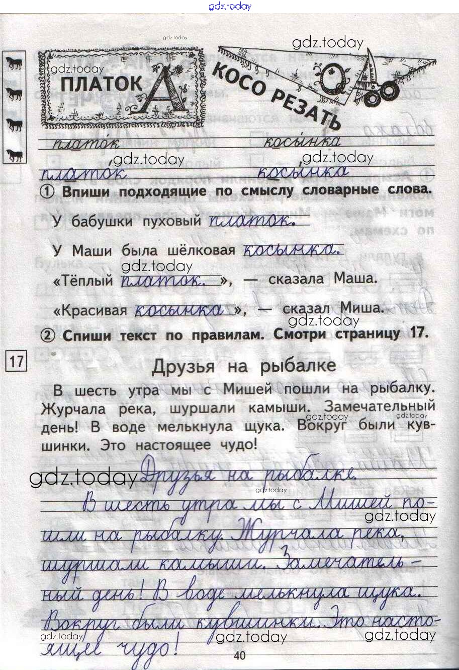 На страницах сайта gdz.today вы найдете учебный и вспомогательный материал, направленный на улучшения знаний школьной программы. ГДЗ - онлайн мир знаний Решение Страницы 40 Тетради для самостоятельной работы по Русскому языку для 1 класса Гольфман, Чуракова Академия Перспективная начальная школа 2016