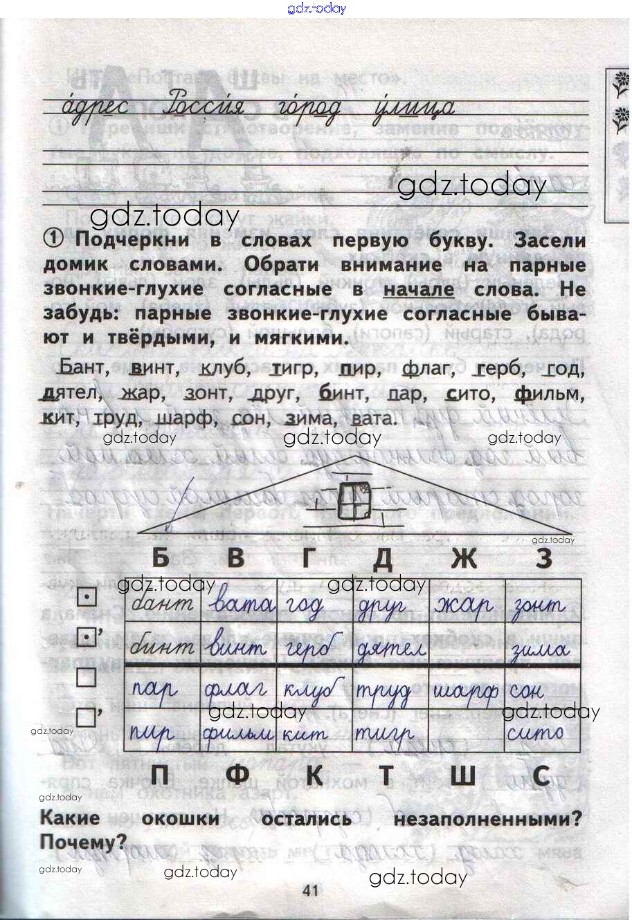 Ответы к Решение Страницы 41 Тетради для самостоятельной работы по Русскому языку для 1 класса Гольфман, Чуракова Академия Перспективная начальная школа 2016