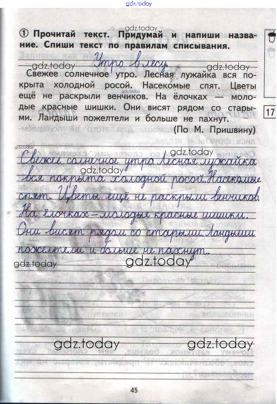 На страницах сайта gdz.today вы найдете учебный и вспомогательный материал, направленный на улучшения знаний школьной программы. ГДЗ - онлайн мир знаний Решение Страницы 45 Тетради для самостоятельной работы по Русскому языку для 1 класса Гольфман, Чуракова Академия Перспективная начальная школа 2016