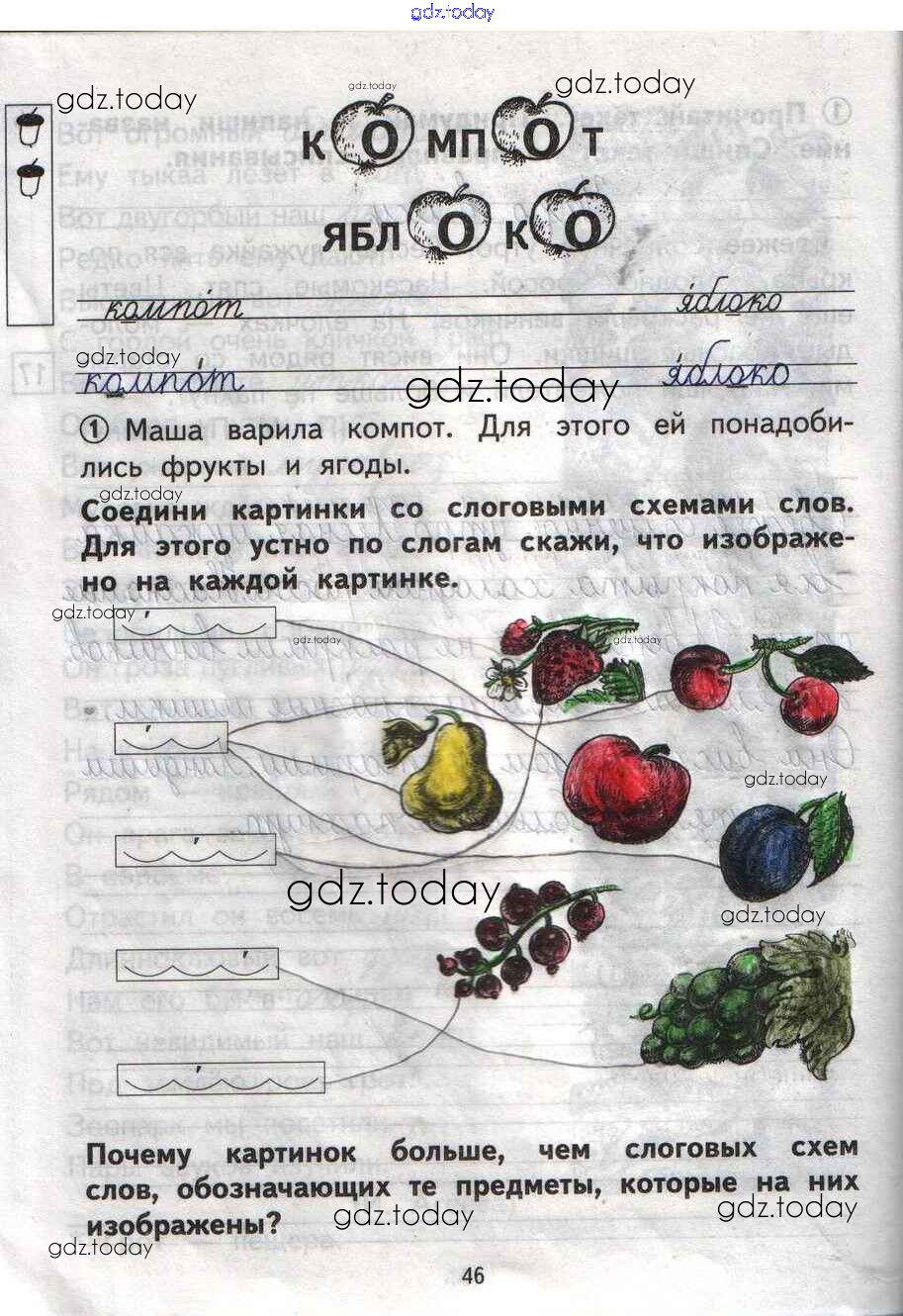 На страницах сайта gdz.today вы найдете учебный и вспомогательный материал, направленный на улучшения знаний школьной программы. ГДЗ - онлайн мир знаний Решение Страницы 46 Тетради для самостоятельной работы по Русскому языку для 1 класса Гольфман, Чуракова Академия Перспективная начальная школа 2016