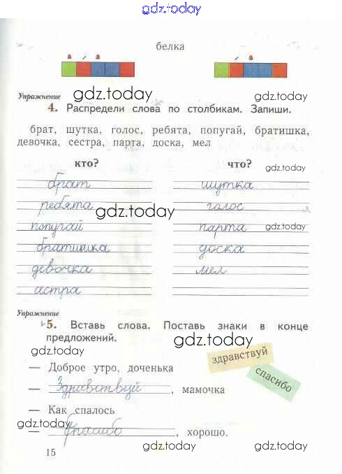 На страницах сайта gdz.today вы найдете учебный и вспомогательный материал, направленный на улучшения знаний школьной программы. ГДЗ - онлайн мир знаний Решение к тетради №1. Страницы 15 Рабочей тетради по Русскому языку для 1 класса Иванов, Евдокимова Вентана-граф Начальная школа XXI века 2016