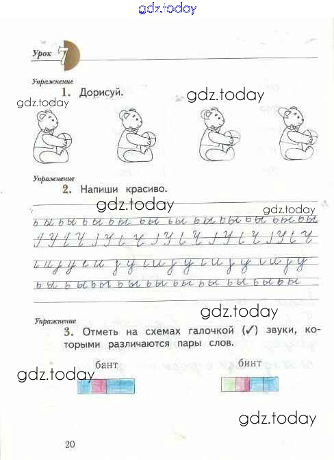 На страницах сайта gdz.today вы найдете учебный и вспомогательный материал, направленный на улучшения знаний школьной программы. ГДЗ - онлайн мир знаний Решение к тетради №1. Страницы 20 Рабочей тетради по Русскому языку для 1 класса Иванов, Евдокимова Вентана-граф Начальная школа XXI века 2016