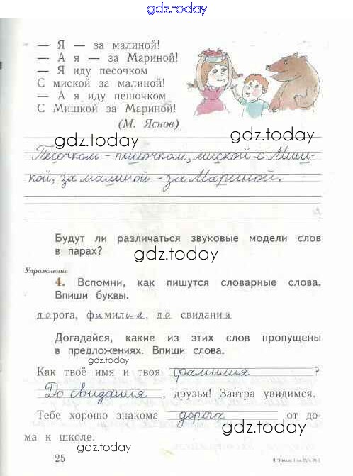 Ответы к Решение к тетради №1. Страницы 25 Рабочей тетради по Русскому языку для 1 класса Иванов, Евдокимова Вентана-граф Начальная школа XXI века 2016