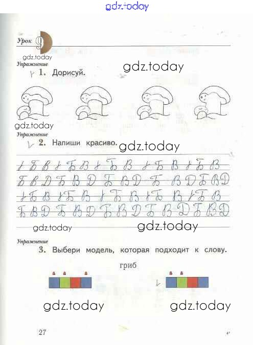 На страницах сайта gdz.today вы найдете учебный и вспомогательный материал, направленный на улучшения знаний школьной программы. ГДЗ - онлайн мир знаний Решение к тетради №1. Страницы 27 Рабочей тетради по Русскому языку для 1 класса Иванов, Евдокимова Вентана-граф Начальная школа XXI века 2016