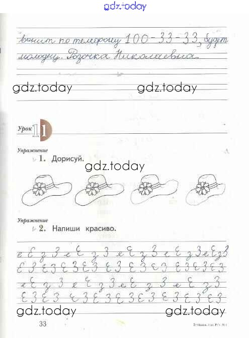 На страницах сайта gdz.today вы найдете учебный и вспомогательный материал, направленный на улучшения знаний школьной программы. ГДЗ - онлайн мир знаний Решение к тетради №1. Страницы 33 Рабочей тетради по Русскому языку для 1 класса Иванов, Евдокимова Вентана-граф Начальная школа XXI века 2016