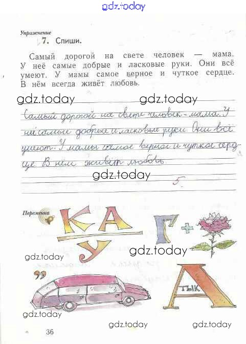 На страницах сайта gdz.today вы найдете учебный и вспомогательный материал, направленный на улучшения знаний школьной программы. ГДЗ - онлайн мир знаний Решение к тетради №1. Страницы 36 Рабочей тетради по Русскому языку для 1 класса Иванов, Евдокимова Вентана-граф Начальная школа XXI века 2016