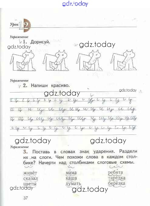 На страницах сайта gdz.today вы найдете учебный и вспомогательный материал, направленный на улучшения знаний школьной программы. ГДЗ - онлайн мир знаний Решение к тетради №1. Страницы 37 Рабочей тетради по Русскому языку для 1 класса Иванов, Евдокимова Вентана-граф Начальная школа XXI века 2016