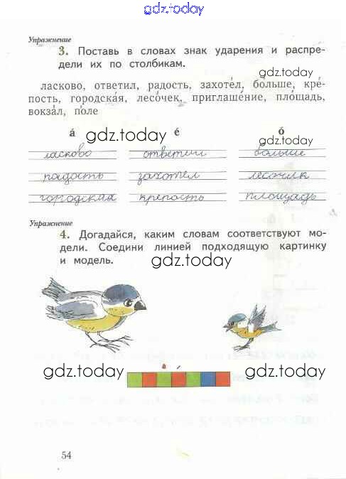 На страницах сайта gdz.today вы найдете учебный и вспомогательный материал, направленный на улучшения знаний школьной программы. ГДЗ - онлайн мир знаний Решение к тетради №1. Страницы 54 Рабочей тетради по Русскому языку для 1 класса Иванов, Евдокимова Вентана-граф Начальная школа XXI века 2016