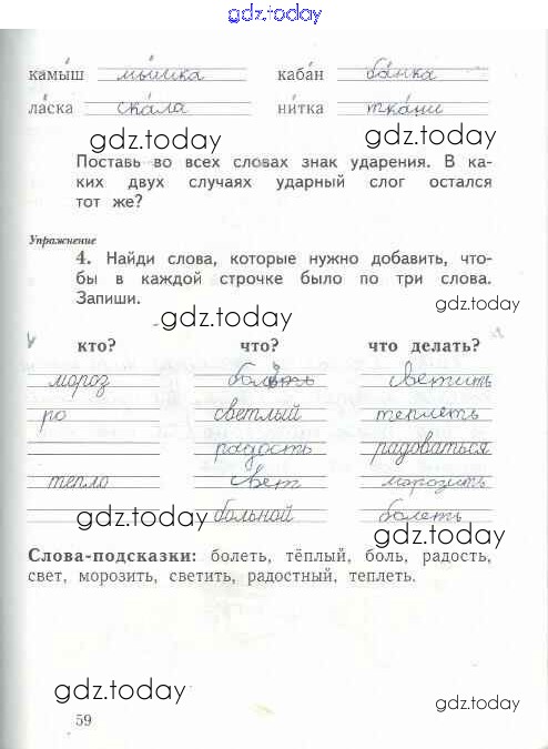 На страницах сайта gdz.today вы найдете учебный и вспомогательный материал, направленный на улучшения знаний школьной программы. ГДЗ - онлайн мир знаний Решение к тетради №1. Страницы 59 Рабочей тетради по Русскому языку для 1 класса Иванов, Евдокимова Вентана-граф Начальная школа XXI века 2016