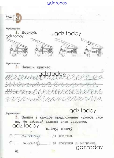 На страницах сайта gdz.today вы найдете учебный и вспомогательный материал, направленный на улучшения знаний школьной программы. ГДЗ - онлайн мир знаний Решение к тетради №1. Страницы 61 Рабочей тетради по Русскому языку для 1 класса Иванов, Евдокимова Вентана-граф Начальная школа XXI века 2016