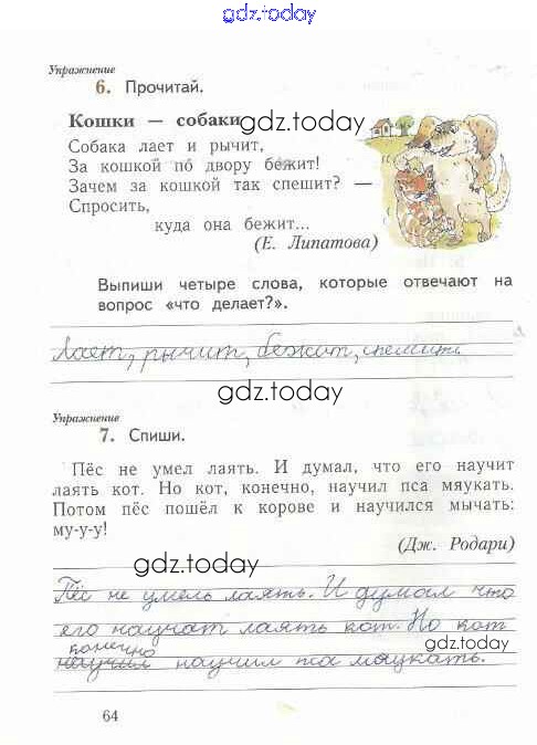 На страницах сайта gdz.today вы найдете учебный и вспомогательный материал, направленный на улучшения знаний школьной программы. ГДЗ - онлайн мир знаний Решение к тетради №1. Страницы 64 Рабочей тетради по Русскому языку для 1 класса Иванов, Евдокимова Вентана-граф Начальная школа XXI века 2016