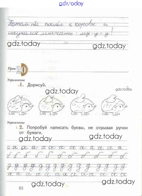 На страницах сайта gdz.today вы найдете учебный и вспомогательный материал, направленный на улучшения знаний школьной программы. ГДЗ - онлайн мир знаний Решение к тетради №1. Страницы 65 Рабочей тетради по Русскому языку для 1 класса Иванов, Евдокимова Вентана-граф Начальная школа XXI века 2016