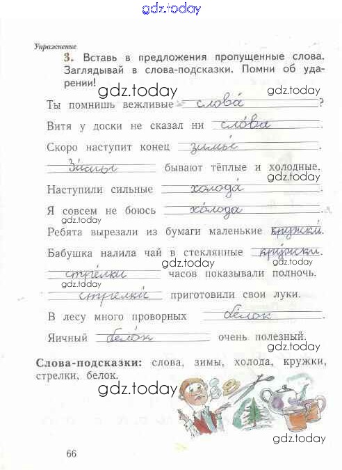 На страницах сайта gdz.today вы найдете учебный и вспомогательный материал, направленный на улучшения знаний школьной программы. ГДЗ - онлайн мир знаний Решение к тетради №1. Страницы 66 Рабочей тетради по Русскому языку для 1 класса Иванов, Евдокимова Вентана-граф Начальная школа XXI века 2016